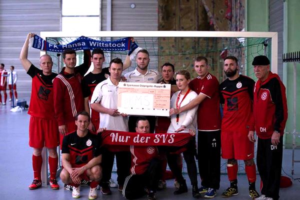 Der SV Suckow bedankt sich bei seinem Partnerverein dem FK Hansa Wittstock für die Spende von 300 EUR im Rahmen unseres DKMS-Hallenmasters zugunsten der Deutsche Knochenmarkspenderdatei.