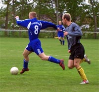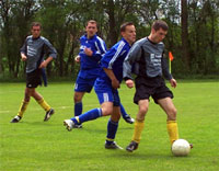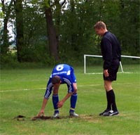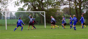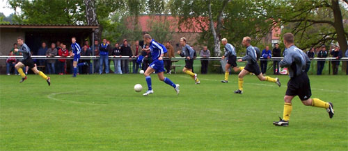 Kreispokal. "Wenn du zwei Gänge zurück schaltest, dann brauchst du dich normalerweise nicht zu wundern", ärgerte sich Hansa´s Trainer Drabow, nach dem Kreispokal-Halbfinale gegen Rhinow II. Seine Mannschaft gewann zwar 4:1 (2:0), doch tat sich der souveräne Kreismeister am Sonnabend sehr schwer gegen den Gastgeber aus der 2. Kreisklasse. "Mit der ersten Halbzeit bin ich ja zufrieden. Wir haben den Ball gut laufen lassen, haben uns gut bewegt und auch die Tore gemacht. Aber die zweite Halbzeit war spezielle in unserer Defensive eine Katastrophe", fand die überhebliche Spielweise keinen Anklang bei den Verantwortlichen von Hansa. "Wenn man ehrlich ist, dann muss Rhinow doch das 2:2 machen. Und da darf sich keiner beschweren." Hansa begann die Partie so, wie es die Zuschauer erwarteten. Sie nutzten ihre technische Überlegenheit zu gekonnten KOmbinationen und ließen Ball und Gegner laufen. Rhinow stand von Beginn an tief in der eigenen Hälfte und versuchte über den schnellen Michael Haas zu Konterchancen zu kommen. Doch im ersten Durchgang war für den Gastgeber nichts zu holen. Angriff auf Angriff rollte auf das heimische Gehäuse. Enrico Reinke (5.) mit einem Abstaubertor und Stephan Obst (32.) sorgten für die beruhigte Halbzeitführung. Nach dem Wechsel kam es dann zu den Unachtsamkeiten in den Wittstocker Reihen. "Da redest du in der Kabine noch auf die Jungs ein, sie sollen das noch nicht abhaken, und die spielen eine solche katastrophale zweite Halbzeit", konnte sich Drabow nicht beruhigen, zu dicht stand Rhinow vor der Überraschung. Sie hatten bis dato noch keine Chance zu verzeichnen, doch mit Beginn der zweiten 45 Minuten änderte sich dies. Der letztlich zum tragischen Helden avancierende Michael Haas tauchte innerhalb von vier Minuten dreimal allein vor Keeper Matthias Koch auf. Doch dieser hielt glänzend, oder das Schussglück fehlte. "Mensch, wenn da das Anschlusstor fällt, dann wäre hier mehr drin gewesen", philosophierten die älteren Zuschauer am Rande. Recht hatten sie. Es kam anders. Gute Mannschaften brauchen nicht viele Chancen und schaffen es auch mit minimalen Aufwand, solche Spiele für sich zu entscheiden. Der ansonsten unauffällig agierende Thomas Techen sorgte mit einer schönen Einzelleistung für das vorentscheidende 3.0 /73.) und zehn Minuten später traf er wieder zum 4:0. Rhinow war ständig bemüht und hatte auch Chancen, doch Haas, der wieder zweimal allein vorm Keeper auftauchte, hatte einfach kein Schussglück. "Wenn wir 100-prozentig konzentriert spielen, dann passiert gar nichts, doch so haben wir Rhinow zum Toreschießen eingeladen", so Drabow. Doch Haas schlug die Einladung aus. "Ein wenig tut er mir schon leid, weil der Junge sehr gut gespielt hat, haber der trifft das Tor einfach nicht", hatte der Wittstocker Manfred Jungbluth fast schon Mitleid. Rhinow wurde in der 88. Minute noch für ihr engagiertes Spiel mit dem Treffer zum 1:4 durch Lamprecht belohnt. Zu diesem Zeitpunkt spielten die Gastgeber nur noch zu zehnt, weil der eingewechselte Scherbenske die Ampelkarte gesehen hatte. Hansa: Matthias Koch; Thomas Dräger, Peter Techen, Marco Zerbian (Normen Fitz), Christian Obst, Marcel Steinbach, Stephan Obst, Thomas Techen, Enrico Reinke (Matthias Schnell), Stefan Best, Jens Drößler |