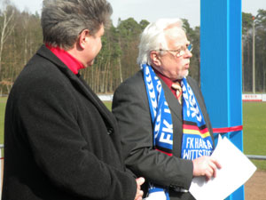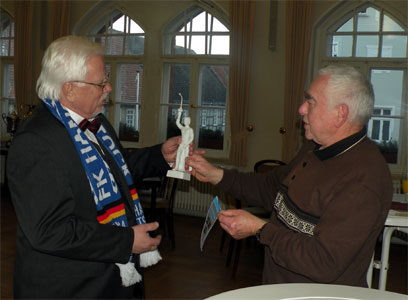Empfang des zweitgrößten Vereins im Landkreis anlässlich der Gründung vor 90 Jahren (16.02.2009) WITTSTOCK Hans-Jürgen Goldberg ist kein Mann der großen Worte. Länger als drei Minuten dauern seine Reden normalerweise nicht. Aber zum Empfang aus Anlass des 90-jährigen Vereinsbestehens musste er eine Ausnahme machen, immerhin ist er der Präsident des FK Hansa Wittstock. „Das wird die längste Rede, die ich je gehalten habe.“ Dabei beschränkte sich Hans-Jürgen Goldberg im Wesentlichen auf die vergangenen zehn Jahre. Natürlich vergaß er nicht, zu erwähnen, dass mit 90 Jahre Hansa auch 90 Jahre organisiertes sportliches Geschehen in Wittstock verbunden sind. Rein zahlenmäßig hat der Verein in den zurückliegenden zehn Jahren einen erheblichen Mitgliederzuwachs zu verzeichnen. 1999 waren es um 300 Sportler in den drei Abteilungen Fußball, Handball und Kegeln. Aktuell stehen 547 Menschen in der Mitgliederkartei, davon 312 Kinder und Jugendliche. Goldberg: „Das sind 312 Kinder und Jugendliche, die nicht in der Buswartehalle sitzen.“ Diese Zahlen seien ein Indiz für die Attraktivität des zweitgrößten Vereins im Landkreis Ostprignitz-Ruppin. Der Vorstand hat ausgerechnet, wie viel ehrenamtliche Arbeit die mehr als 50 Übungsleiter, Betreuer, Schiedsrichter und Ordner so im Jahr leisten. 1965 Tage kommen da zusammen – für jeden einzelnen im Durchschnitt 37 Tage, und das alles unentgeltlich. Dafür gab es einen großen Applaus von den anwesenden aktiven und ehemaligen Sportlern, von Politikern und von Gästen aus den anderen Vereinen. Besonders stolz ist Goldberg auf die unzähligen Erfolge des Nachwuchses. „Im Fußball spielten wir in allen Klassen von der Babyliga bis zu den A-Junioren immer in den höchsten Ligen des Landes Brandenburg.“ In der Saison 2005/2006 gelang den A-Junioren gegen Energie Cottbus der Landespokalsieg. Und dann zählte Goldberg auf, gegen wen die Wittstocker Fußballer bereits gespielt haben: Werder Bremen, Energie Cottbus, Hertha BSC, BFC Dynamo, FC St. Pauli, Eintracht Braunschweig, FC Carl Zeiss Jena und viele andere namhafte Mannschaften gehörten dazu. Erfolgreich waren auch die Handballer, die in der Oberliga Brandenburgs gut mithalten konnten. Als „beachtlich“ wertete der Vereinspräsident die Aufbauarbeit in der noch jungen Abteilung Schwimmen. Übungsleiterin Petra Thiesen verstehe es mit viel Geschick, Kinder für den Schwimmsport zu begeistern, und die Erfolge ließen nicht auf sich warten. Auch die Kegler mischen seit Jahren erfolgreich in der Regionalliga Wittstock / Pritzwalk mit. „Vordere Plätze sind ein Muss für sie.“ Die Damen der Gymnastikabteilung betreiben ihren Sport eher unspektakulär, sie treffen sich wöchentlich, um sich mit Spaß fit zu halten. Besonders erwähnte Goldberg die erfolgsverwöhnten Fußball-Damen. Titel der letzten Jahre sind unter anderem: Hallenkreismeister, Vizemeister und Pokalsieger Westhavelland 2007/2008, ostdeutscher und deutscher Beach-soccermeister 2008 und die Teilnahme als Deutschlands Vertreter am European Championchip 2008 in Spanien. Vereinspräsident Hans-Jürgen Goldberg wies auch die zur Verfügung stehenden Sportstätten hin, ohne die ein erfolgreiches Vereinsleben nicht möglich ist. Vieles wurde nach der Wende geschaffen. Mit großem Aufwand wurde zum Beispiel das Gebäude der ehemaligen Badeanstalt für die Bedürfnisse des Vereins umgebaut. Die Handballer nutzen die neue Stadthalle. Das jüngste große Projekt, die Überdachung der Zuschauertribüne, ist so gut wie abgeschlossen. Die Einweihung wird der nächste wichtige Termin im Festjahr sein. Karl Gärtner, der Vorsitzende der Stadtverordnetenversammlung, bedankte sich in seiner Rede für die aufopferungsvolle Arbeit, die in dem Verein geleistet werde. Er erwähnte insbesondere die Sponsoren, die immer wieder Mannschaften einkleiden oder für den Transport der Sportler zu den Wettkämpfen sorgen. Und er sicherte dem Verein die weitere Hilfe der Stadt zu. Auch dafür gab’s viel Applaus. (Quelle: MAZ-Uta Köhn) |