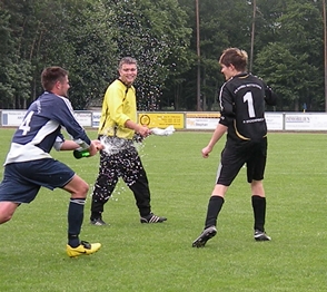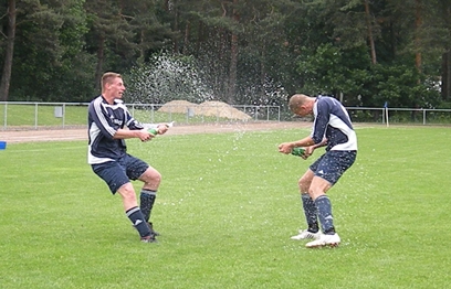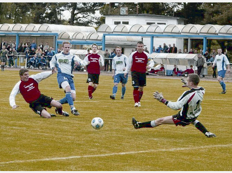 Gastgeber als schlechte Verlierer Trainer Mario Berg vom Schönwalder SV war nach dem Schlusspfiff sichtbar erleichtert. „Das war nicht immer einfach, zumal unter dieser Hitze.Aber die Einstellung und Moral der Mannschaft war sehr gut. Jeder wusste, worum es ging, und hat zu hundert Prozent das umgesetzt, was wir uns vorgenommen hatten“, sagte der SSV-Coach nach dem 1:0 (1:0)-Sieg seiner Elf auswärts beim Tabellendritten Hansa Wittstock. Die Schönwalder liegen einen Spieltag vor Ende der Saison weiter einen Punkt vor Chemie Premnitz, das bei Eiche 05 Weisen mit 5:2 gewann. „Diesen Vorteil wollen wir auf der Zielgeraden nicht mehr verschenken“, sagte Mario Berg. Im Heimspiel nächsten Sonnabend gegen den VfL Nauen sollen mit einem Dreier Platz eins und der damit verbundene Aufstieg in die Landesliga perfekt gemacht werden. Von Anfang an war dem Spiel in Wittstock, zu dem rund 60 Schönwalder Fans mitgereist waren, anzumerken, dass es noch um viel ging. Denn auch die Gastgeber hätten bei einem Sieg noch die theoretische Chance zum Aufstieg gehabt. Bereits in der 2. Minute gab es den ersten Schock, für die Schönwalder, denn Kevin Potyralla zog sich nach einem Ellenbogenschlag eine Platzwunde am Kopf zu und musste ausgewechselt werden. Wittstock besaß die erste gute Chance, doch das erste Tor erzielten die Gastgeber. Frank Gutknecht köpfte nach einer Viertelstunde eine Freistoßflanke von Daniel Ruff ins rechte Eck. Dass es das einzige Tor des Spiels bleiben sollte, konnte zu diesem Zeitpunkt noch keiner ahnen. Drei Minuten später fast das 2:0 für Schönwalde. Steven Meier traf aber mit einem sehr gute getretenen 18-Meter-Freistoß nur das rechte Lattenkreuz. Ein, zwei Möglichkeiten hatten auch die Wittstocker noch im ersten Durchgang, doch eigentlich hätte auf der anderen Seite Frank Gutknecht in der 38. Minute mit einer hundertprozentigen Chance nach Eingabe von David Schalow für die Vorentscheidung sorgen müssen. „Das war das einzige Manko, dass wir bei unseren klaren Möglichkeiten den Sack nicht früher zugemacht haben“, sagte SSV-Trainer Berg. Denn auch in Hälfte zwei vergaben Schalow (72.) und Gutknecht (77.) allein vor Hansa-Keeper Kevin Apitz. Das 2:0 von Gutknecht (90.) wurde allerdings unverständlicherweise wegen angeblichem Abseits nicht gegeben. |