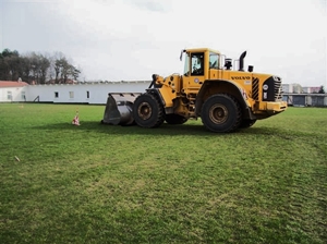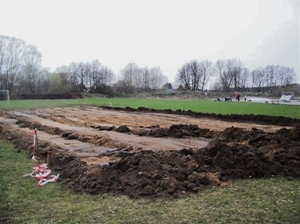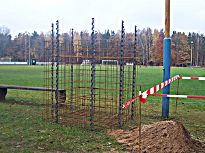 In den letzten Wochen fanden 16 Vorabnahmen statt. Nur an zwei Standorten war der geforderte Bauzaun vorhanden, ansonsten rot-weißes Flatterband oder auch nicht einmal das. Der Projektleiter der zuständigen Bauconzept GmbH, Wolfgang Klein, verweist in diesem Zusammenhang auf die Notwendigkeit eines Bauzaunes bis zur endgültigen Fertigstellung. Im Grundstückseigentümervertrag mit dem FLB ist der „Bauzaun“ unter Punkt C VIII vertraglich vereinbart. Gründe dafür sind, Menschen vor Verletzungen (offene Bodenhülsen, gelagertes Baumaterial) zu schützen, aber auch vor baulicher Zerstörung nach erfolgter Vorabnahme und nach Einbau der elastischen Tragschicht. Für Schäden an der elastischen Tragschicht durch Befahren oder Darüberlaufen (den Fußball holen, der vom benachbarten Spielfeld darauf landete) kann nicht die vom FLB beauftragte Firma Polytan haftbar gemacht werden. Ein weiterer Hinweis: Die Fundamente werden nach Setzen der Bande mit Mörtel verfüllt. Deshalb wird empfohlen, graues Pflaster zu verwenden. Bei farbigen Pflaster (z.B. rot, anthrazitfarbig) wird eine graue Oberfläche zwischen anderen Farben nicht schön aussehen. |