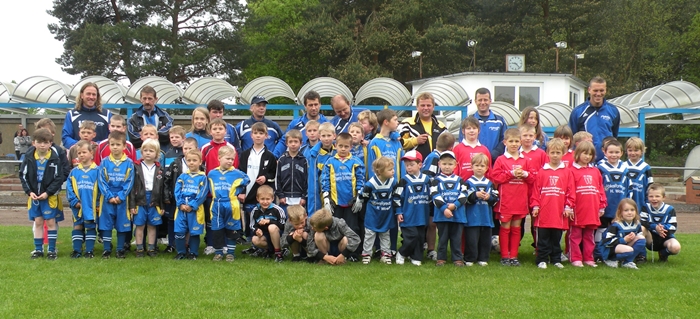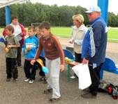42 kleine Fußballer und Fußballerinnen zwischen vier und acht Jahren kamen am Pfingstmontag ins Stadion Alle Hansa-Organisatoren waren total überrascht, dass so viele Kinder mit ihren Eltern den Weg ins Stadion gefunden hatten. Obwohl es kurz vor Turnierbeginn einen mächtigen Schauer gab, ging die Lust am Fußball spielen nicht verloren. Alle Kinder wurden ihren Trainern zugeordnet und bekamen ein richtiges Trikot der Hansa-Junioren übergezogen. Zur Erwärmung gab es ein altbekanntes Spiel "Fischer, Fischer wie tief ist das Wasser? ..." Nachdem alle Kinder dann gefangen wurden, konnte das WM-Tunier los gehen. Sieben Mannschaften, die Ländernamen zugeordnet bekamen, kickten, was das Zeug hält. Im K.-o.-System ging es von der „Landesmeisterschaft“ bis zum „Weltmeister“. | | Unsere Trainingszeiten |